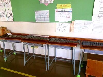 廊下に置かれた楽器に向かい、休み時間も、一生懸命練習する子どもがいます。