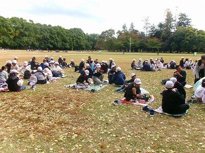 木々が色づきはじめた航空公園の芝生の上で、楽しくお弁当を食べました。