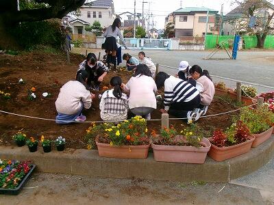 園芸委員会の子ども達が、花で学校を明るくしようと、協力して花壇を整備してくれました。