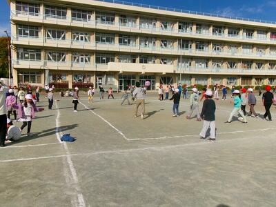 本校では、水曜日に清掃時間を設けず、昼休みを長くしています。クラスごとに様々な企画をして、楽しく過ごしています。先生も子ども達と一緒に遊びます。