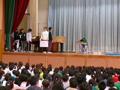 第2学期終業式は、インフルエンザ等で欠席する子が増加傾向にあり、蔓延を防ぐため、放送で実施しました。式では、各学年の代表児童が2学期にがんばったことを披露してくれました。